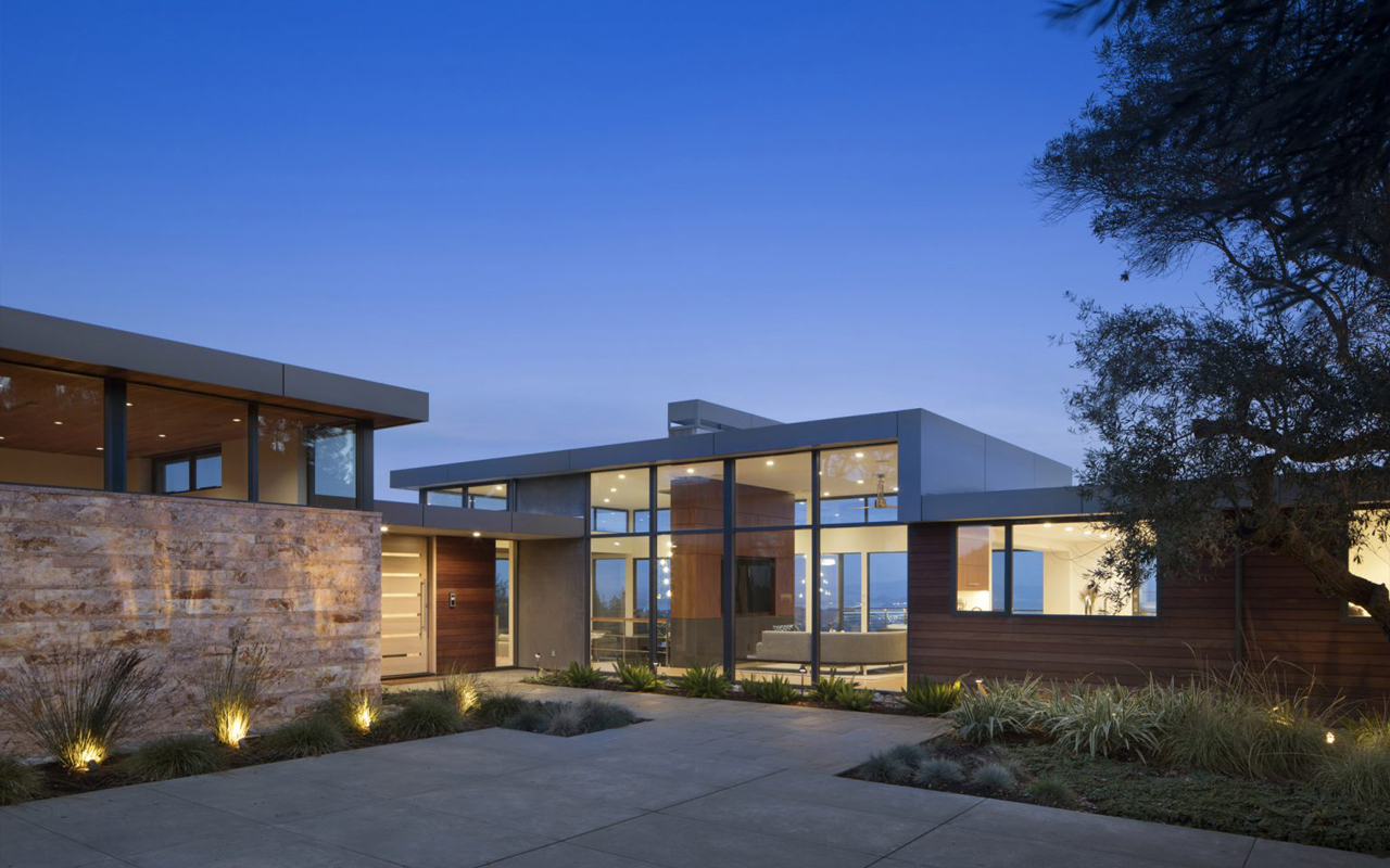 The first day we met our clients at this home in Kentfield, Marin County, we were surprised at how nondescript the front yard of the house was, versus the all glass back yard with great views of the San Francisco Bay. Wanting to balance the house and open it up, we were asked to raise the ceilings and provide more glass and views to the entry front yard. The house was already large and expansive, so more square footage was not necessary, it just needed an architectural facelift.